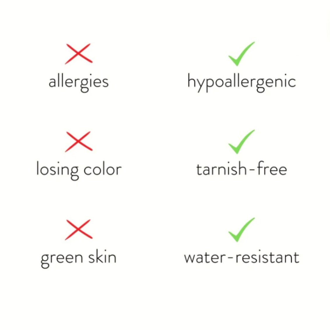 Fabriqué en acier inoxydable étanche, vous n'aurez plus jamais à vous soucier de la décoloration ou du ternissement des bijoux.
