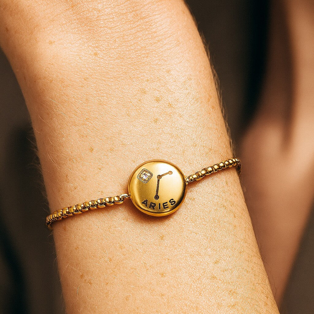 Un hommage à ce qui te guide et te représente. Avec la constellation de ton signe gravée sur un délicat médaillon, ce bracelet te connecte à tes origines astrologiques avec élégance et signification. Porte au poignet l’éclat de ton essence.