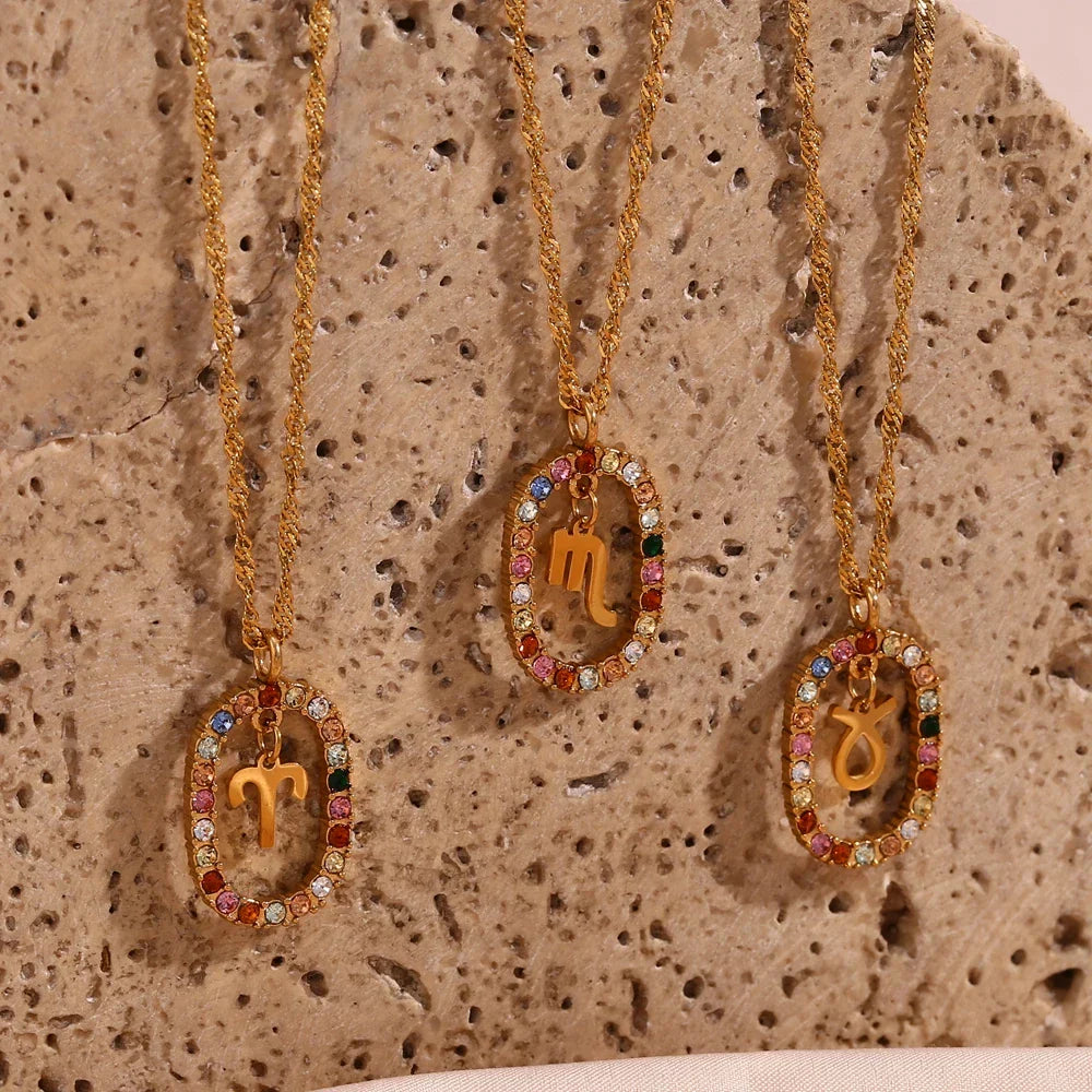 Collier Zodiaque Arc-en-ciel Zirconia (Plaqué Or)